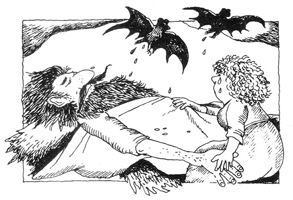 Грабш катался по полу пещеры и так стонал, что слышно было по всему лесу. Старый лесник Эммерих, бродивший по опушке, остановился и сказал собаке: «Слышишь, Чапа? К нам в Чихенбургскую округу уже забредают волки. Невеселые времена».