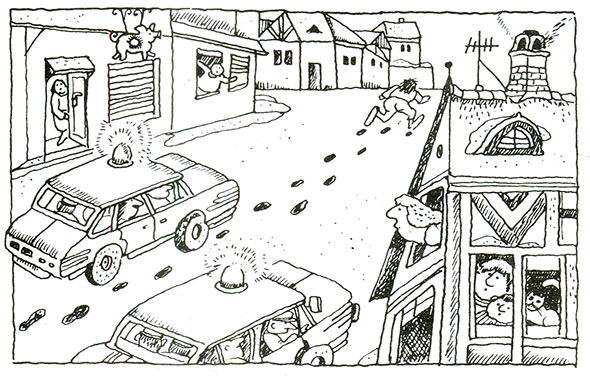 А полиция уже неслась по улицам Чихенау, и сирена перебудила весь город. Жители испуганно выглядывали из окон и перешептывались: «В городе бродит Грабш».