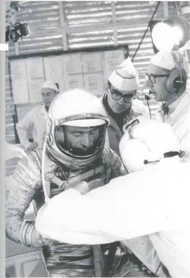 Астронавт Скотт Карпентер готовится к полёту на борту капсулы «Меркурий» – второго орбитального полёта США. Гюнтер и его команда проводят финальные проверки перед посадкой Карпентера в «Аврору-7».