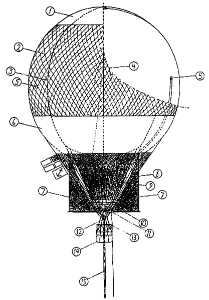 12‑место крепления гайдропов, 13 – кольцо для крепления приборов,