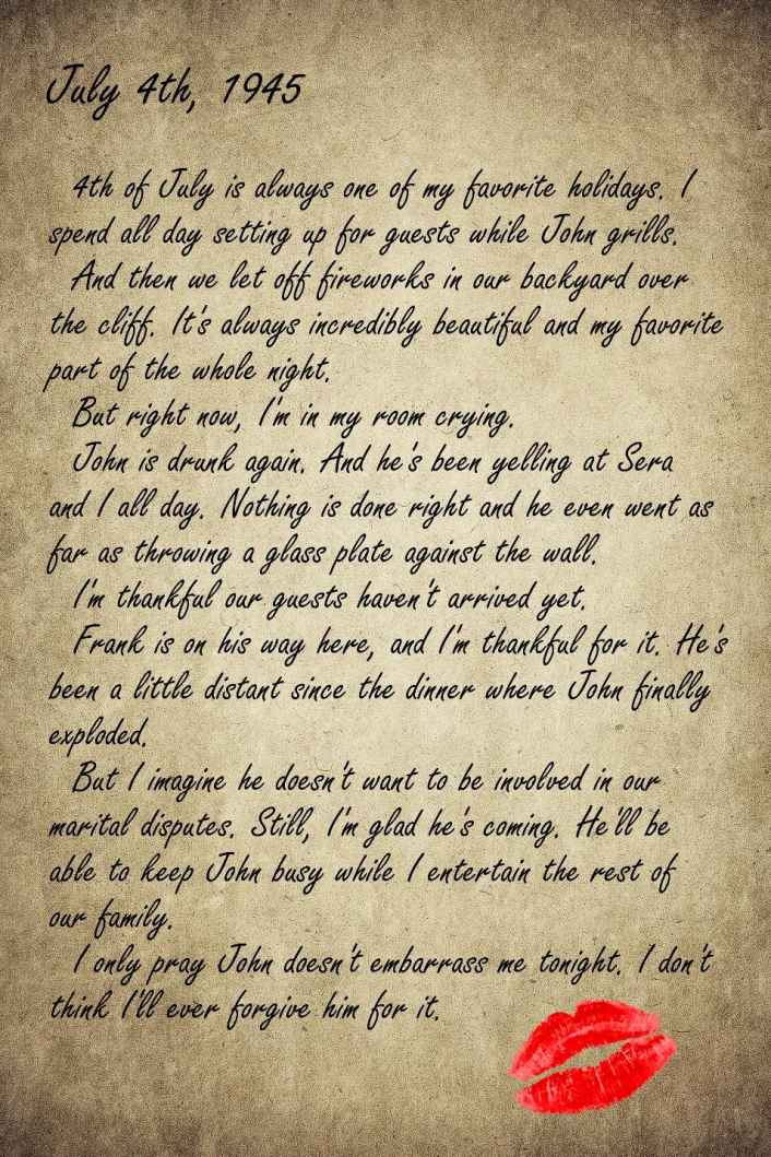 I sit up and bring Gigi's journal back towards me. “Anyhoo, let’s just focus on figuring out what happened to my great-grandmother.”