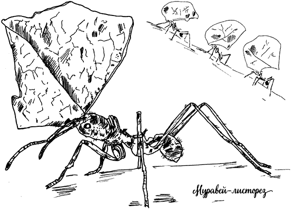 Лишенные потомства, сестры находят себя в заботе о колонии. Помимо королевы, в колонии проживает четыре типа муравьев: малые и большие солдаты, которые защищают гнездо от врагов, а также малые и большие рабочие, они возделывают грибницу. Более крупные рабочие трудятся в лесу, где собирают упавшие с деревьев листья. Найдя подходящий лист, муравьи своими мощными челюстями разрезают его на мелкие кусочки, затем взваливают эти кусочки на спину (груз зачастую весит больше, чем сам муравей) и несут их в гнездо. Рабочие следуют по знакомым тропам, и чтобы избежать столкновений на «магистралях», выстраиваются в стройные колонны.