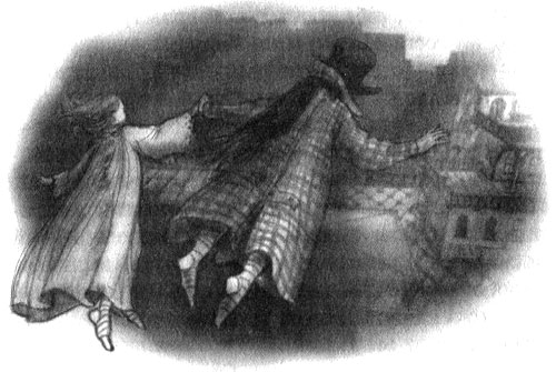 – В сумерки он отправляется на прогулку, – объяснил господин Лильонкваст. – Он облетает на своих крыльях весь квартал вокруг церкви Святой Клары, чтобы посмотреть, не найдется ли там каких-нибудь детей, которым очень-очень нужно попасть в Страну Между Светом И Тьмой. Летим дальше.