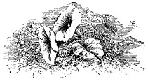 Королевич присел у ручья, а лев прилег на бережок и стал ему лапой обрызгивать лицо водой из ручья.