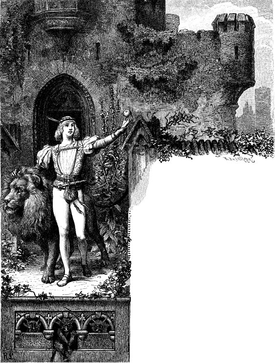 Великан же тотчас схватил кольцо и побежал с ним прочь. Однако лев, заметивший кражу, тотчас пустился вслед за великаном, вырвал у него кольцо из рук и принес его своему господину.