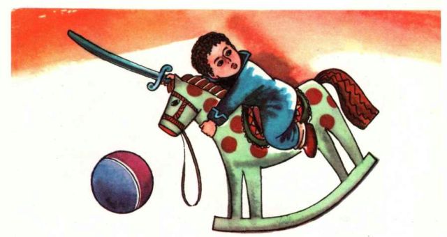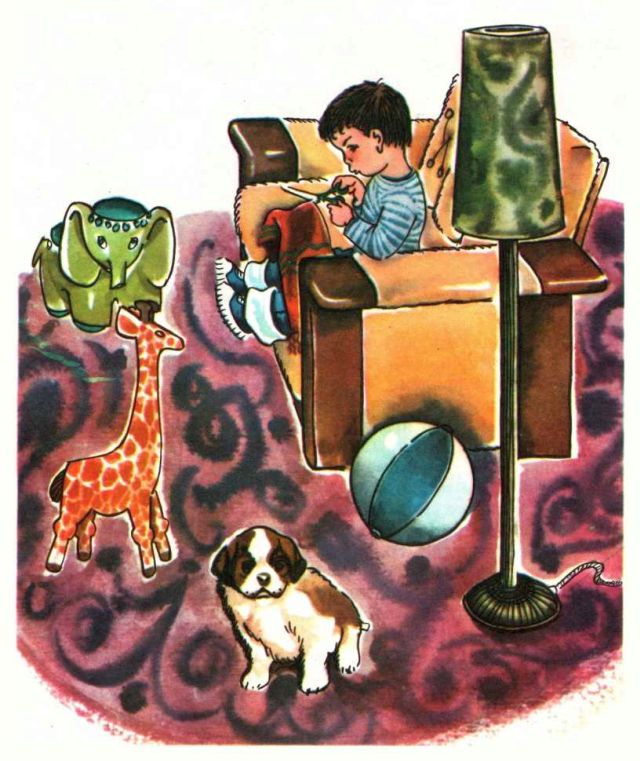 А ещё у меня есть автомашина четырёхколёсная! И подъёмный кран, тоже четырёхколёсный, ещё ружьё… без колёс! И слон был, только Рачик оторвал ему хобот. А давно у меня были альбом для рисования и цветные карандаши. Теперь нету. Даже не знаю, как это случилось. Мама говорит, что я потерял их. Но когда? Я не заметил! А-а-а! Наверное, потерял, когда спал, потому и не заметил.