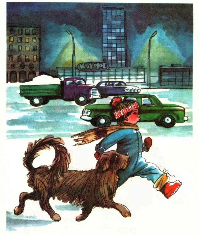 Бегу, бегу… Забежал на какую-то маленькую улицу. Там ни собак, ни машин. Только два мальчика строят снежную горку. Один мальчик крикнул мне: