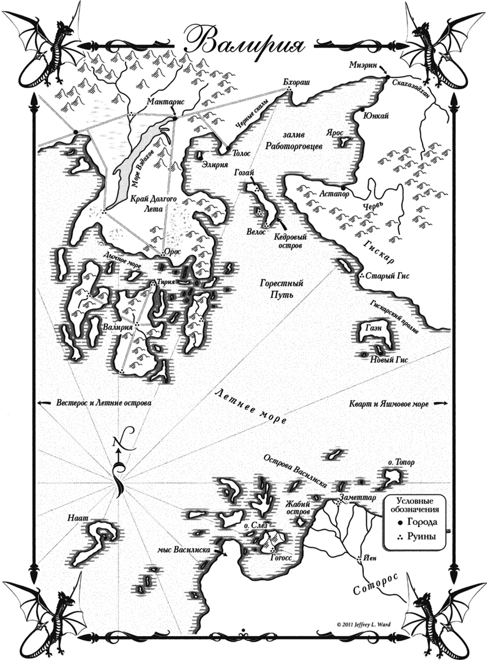 Мейстер стоял на овеваемом ветром балконе своих покоев. Сюда к нему прилетали вороны после долгих странствий. Они порядком загадили горгулий – адского пса и двуногого дракона, возвышавшихся на двенадцать футов по обе стороны от него, двух из тысячи изваяний, хранящих стены древней крепости. Когда мейстер впервые приехал на Драконий Камень, армия каменных чудовищ наводила на него оторопь, но с годами он к ним привык и думал о них, как о старых друзьях. Сейчас он вместе с горгульями взирал на небо с недобрым предчувствием.