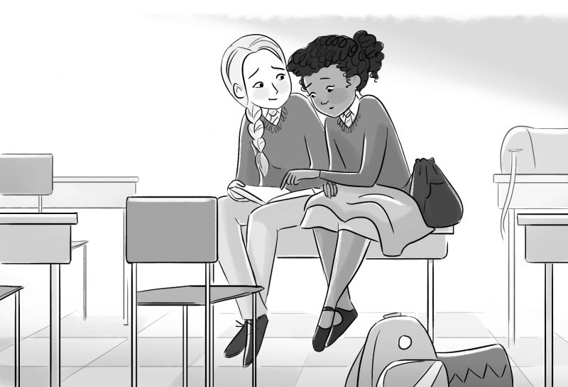 – У меня девять правильных, – шепнула Хлоя. – Это был сложный диктант. Так что не переживай, ты не одна.