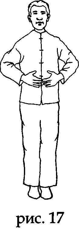 Поверните ладони к животу и прижмите их к нему, при этом соединенные кончики средних пальцев располагаются прямо на пупке (рис. 17).