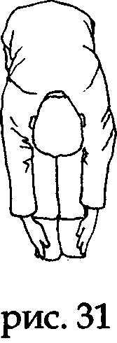 На задержке дыхания переместите ладони по наружным краям стоп к пяткам (рис. 31).