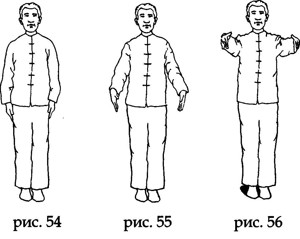 Встаньте ровно, носки и пятки вместе, ладони вдоль туловища, колени выпрямлены, макушка «подвешена» (рис 54).
