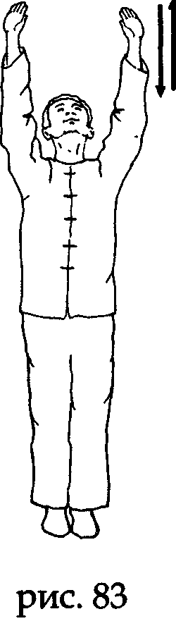 После возвращения рук в исходное положение на выдохе, раскройте точки лаогун и три раза на вдохе притяните ими энергию-ци Неба (акцент делается на вдохе при сгибании рук, а о незаметном выдохе при распрямлении рук стараемся не думать совсем) (рис. 83).