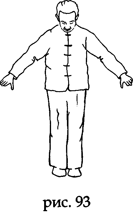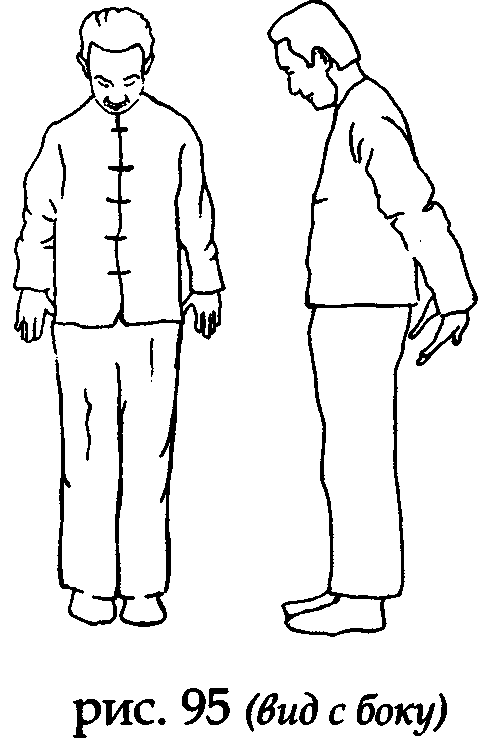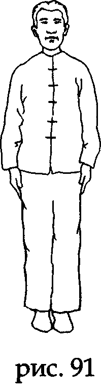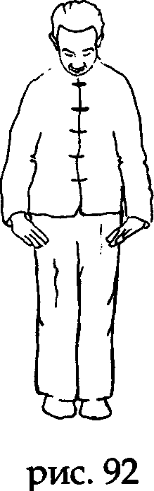 Встаньте прямо, носки и пятки вместе, ладони вдоль туловища, колени выпрямлены, макушка «подвешена» (рис. 91).