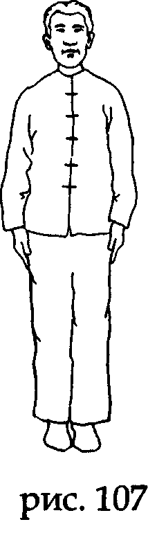 Встаньте прямо, носки и пятки вместе, ладони вдоль туловища, колени выпрямлены, макушка «подвешена» (рис. 107).