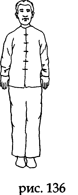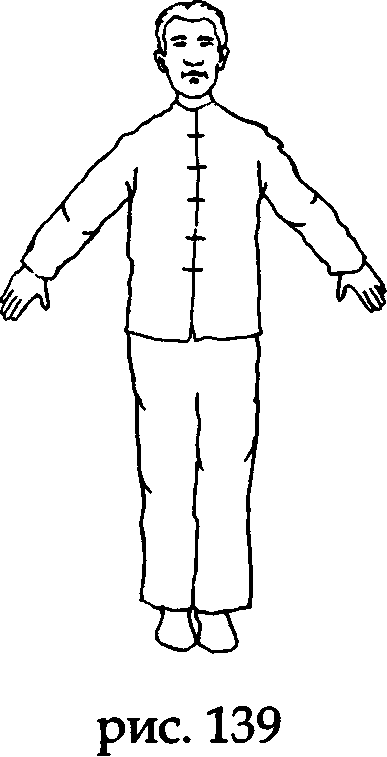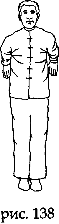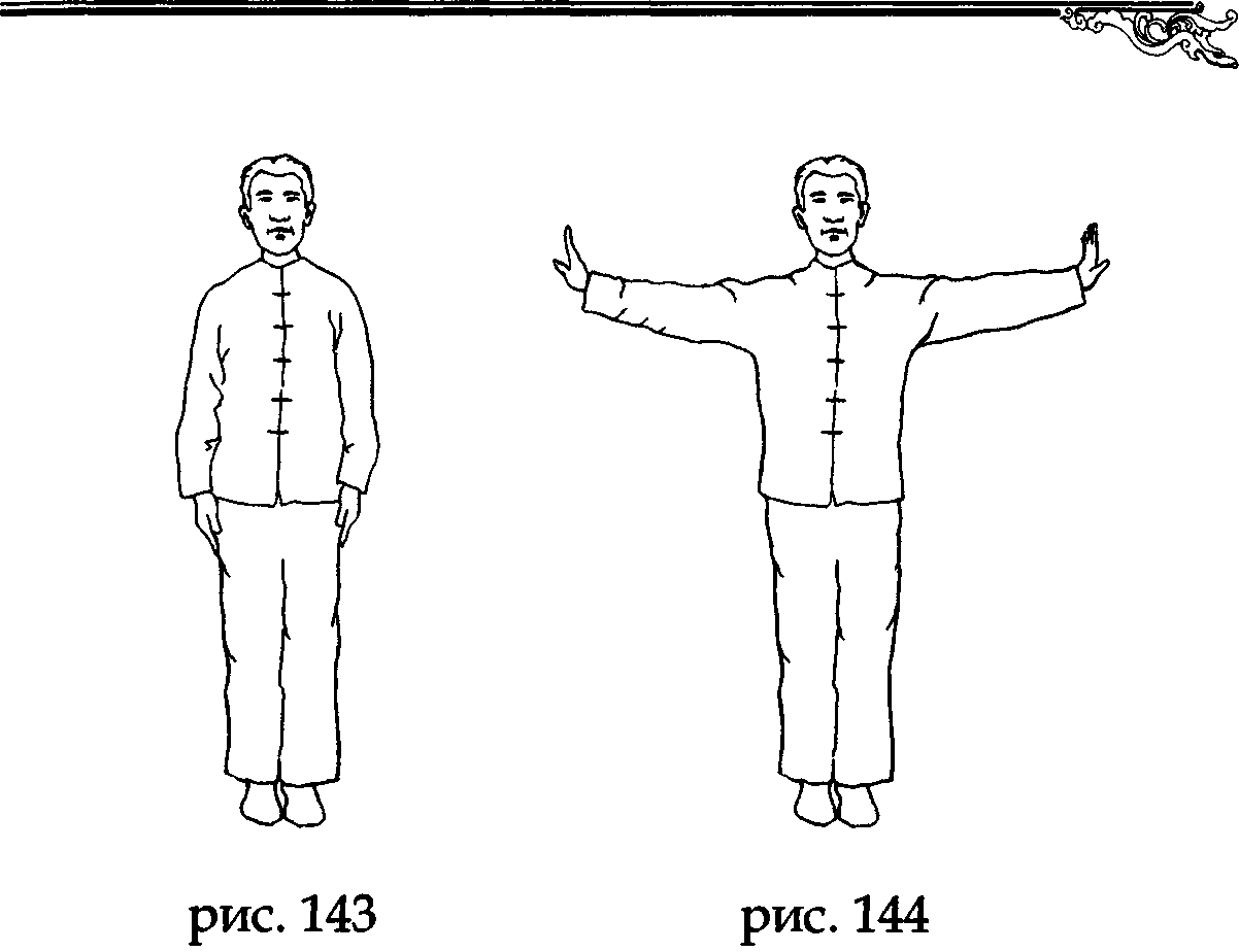 Встаньте прямо, носки и пятки вместе, ладони вдоль туловища, колени выпрямлены, макушка «подвешена» (рис. 143).