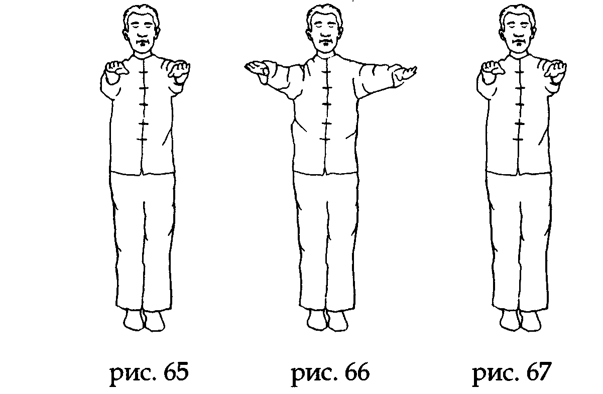 3 раза качните руками в стороны и навстречу друг другу (два движения считать за один раз) (рис. 65, 66, 67).
