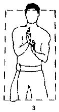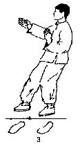 Вес тела на 80 % приходится на заднестоящую ногу. Обе ноги немного согнуты в коленях, которые стремятся внутрь, прикрывая тем самым область паха. Переднестоящая нога почти свободна и используется для выполнения блокирующих и атакующих действий. (рис. 3).