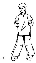 Примите фронтальную стойку. Руки согните и подтяните к груди (рис. 19).