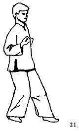 Теперь развернитесь влево на 90°. Вес тела перенесите на правую ногу (рис. 21).