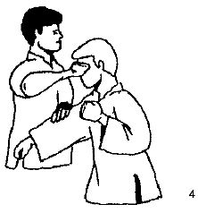 Сделайте движение, обратное наступательному; из правой стойки (рис. 4) левая нога скользит назад (рис. 5) и затем делается полшага назад правой ногой (рис. 6).