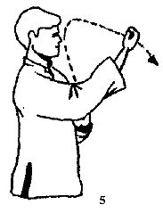 Это сбивающий блок. Движение производится в горизонтальной плоскости от центра тела к плечу, при этом ладонь в конечном положении не выходит за пределы корпуса. ПАК САУ используется для блокирования боковых и прямых ударов (рис. 4).