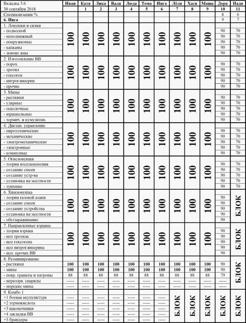 Вернувшись из Намибии и распределив добычу за неделю на сороковой Уровень Инге и тридцать восьмой Маше, я стал изучать новые КомбоНавыки сапёрши. Теперь, радуя мой глаз, они заполнили девятые Специализации у первых шести жён полностью.