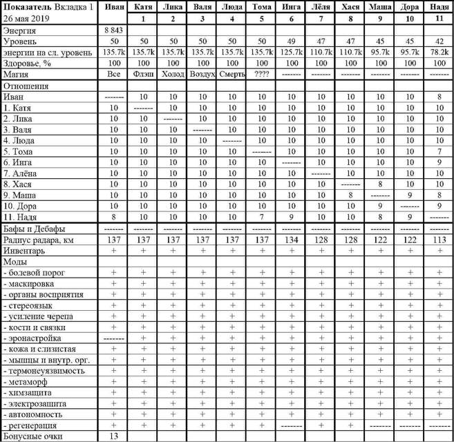 Поднятие на Ступени развития у этих Спутниц шло быстро. Так что я уже скоро узнаю, что именно понапридумывал Симбионт в отношении скуластой. А если ничего не случится, и планы Фарма мы выполним, то к концу недели Уровни получат ещё и Инга с Алёной.