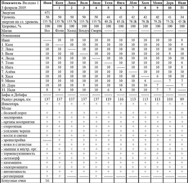 Хуже всех среди жён было сейчас у Нади. Так-то эта последняя принятая в команду жена и без стахановских обязательств рвала на себе подмётки. За месяц скуластая не только еженедельно занималась на тренажёрах и за учебниками, получая очередной Уровень, но и смогла дожать свою пятую Специализацию.