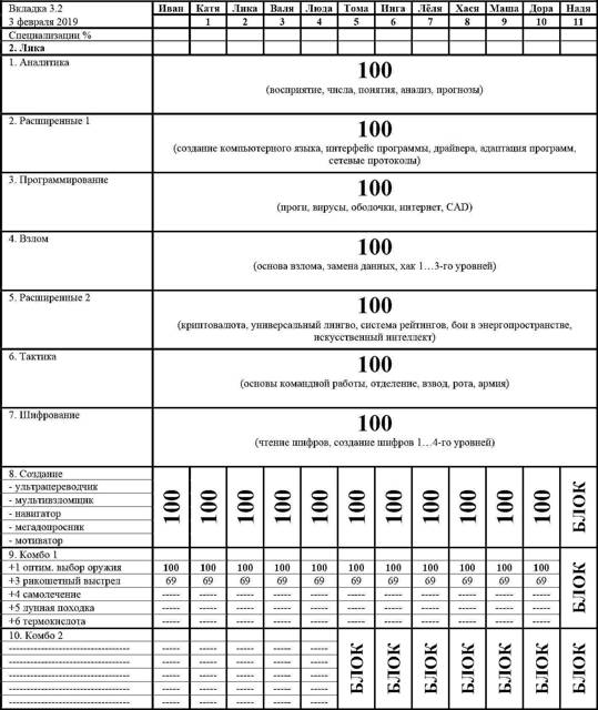 Но драйверша, в отличие от хилерши, последнюю индивидуальную группу Навыков закончит осваивать ещё не скоро. Инга, Алёна и Хася не так занятые в освоении Комбо Навыков, свои восьмые Спецухи осваивали легче рукастой. Они двигались к завершению их изучения с настойчивостью носорогов.