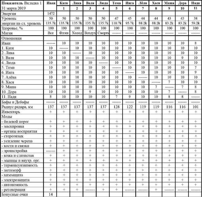 Так-то бафферша среди остальных жён проводила там времени больше всех. Получив вместе с драйвершей новый, для неё – тридцать восьмой, Уровень, она уже почти догнала Дору. Отставание между последними жёнами теперь составляло всего пять Ступеней.