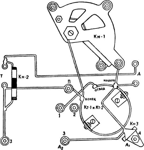 Первый виток катушки Кт2 плотно прилегает к последнему витку катушки Кт1. По существу обе катушки представляют собой одну, часть которой – 55 витков – намотана проводом диаметром в 0,3 миллиметра, а другая часть—100 витков – в 0,12 миллиметра.