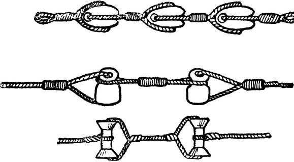 На каждой стороне антенны ставят несколько изоляторов (2–3), связанных между собой проволокой на расстоянии 10–15 сантиметров. Когда цепочка изоляторов, готова, к одному из её концов прикрепляют провод горизонтальной части антенны, а другой конец цепочки изоляторов соединяется с проволокой или верёвкой, которую пропускают через блок и укрепляют у основания мачты. Точно так же другой конец антенны прикрепляется через цепочку изоляторов ко второй мачте.