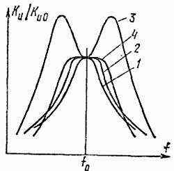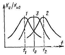 На основании рассмотренных случаев можно сделать вывод, что в многорезонансном усилителе для получения симметричной амплитудно-частотной характеристики отдельные каскады должны быть сгруппированы в пары с одинаковой добротностью и резонансными частотами, симметричными относительно средней частоты fэ. При нечетном числе каскадов один из них должен быть настроен на среднюю частоту f0.