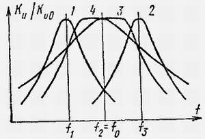 Каждый каскад усиливает сигнал в определенной полосе частот относительно частоты настройки резонансного контура. При соответствующем выборе ширины полос контуров результирующая характеристика имеет плоскую вершину и форму, соответствующую амплитудно-частотной характеристике одного каскада с двухзвенным фильтром с оптимальной связью.