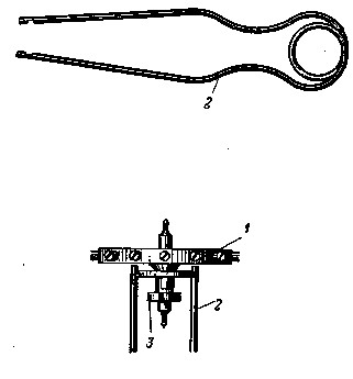 Рис. 86. 1 – специальный циркуль (восьмерка) для проверки биения баланса и колес: