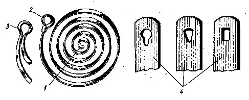 1 – внутренний конец пружины; 2 – наружный конец пружины; 3 – новая форма наружного конца пружины; 4 – форма внутренних замков пружины