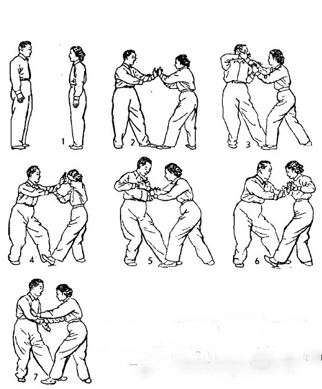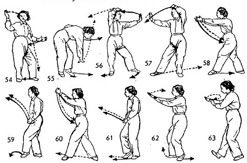 Упр. 31. Трехкратное пропускание партнера за спину. Сань тун бэй.Рис. 54-61.