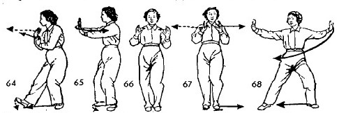 Упр. 69. "Золотой петух переступает с ноги на ногу". Гэн цзи ду ли.Рис. 147, 148.