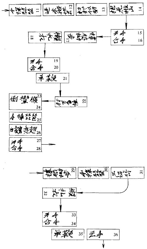 Упр. 7. "Белый аист расправляет крылья". Бай хао лян чи. Рис. 15-17 .
