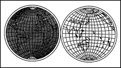 Если читатель внимательно изучит приведенную ранее карту, он увидит, что распределение осадочных пород хорошо согласуется с этой теорией. Если мы предположим, что с хвостом кометы встретилась та часть Земли, которая изображена слева, то мы легко поймем, почему осадочные породы есть в Европе, Африке и частично Америке; на правом же рисунке показана та часть планеты, которая не встретилась с хвостом кометы.