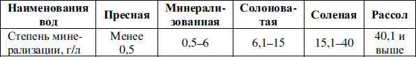Подземная вода находится под действием сил тяжести, увлекающих ее вниз, и молекулярных сил сцепления, стремящихся удержать ее в порах и трещинах пород. В пределах до 100, местами до 600 м подземные воды в основном пресные, более глубокие воды имеют различную степень минерализации (таблица 2).