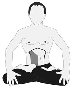 Делаем вдох носом и полный выдох ртом. Задерживаем дыхание на выдохе. Втягиваем живот внутрь – Уддияна Бандха, стягиваем прямые мышцы живота вместе и выталкиваем их вперед, фиксируем их несколько секунд, а потом втягиваем их обратно внутрь. Это Мадхьяма Наули – хорошая тренировка мышц живота для выполнения полной Наули.
