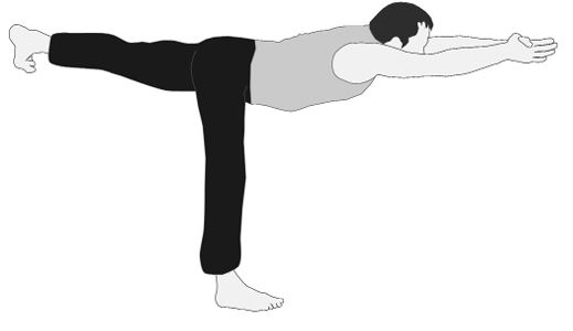 Вирабхадрасана 3 (поза героя) – баланс на ноге, корпус параллельно полу, вторая нога назад, руки вперед