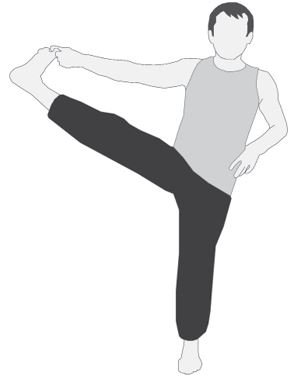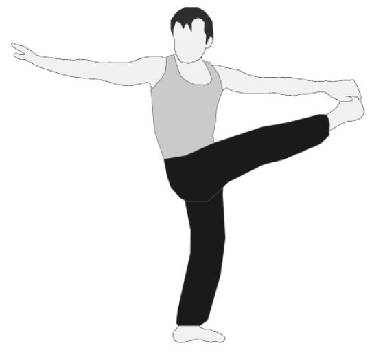 Баланс на одной ноге, с захватом другой прямой ноги руками в замке