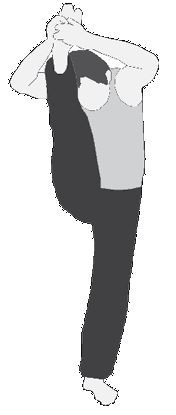РИС. 36. Баланс на ноге с захватом голени в подмышке и руками в замке за спиной * * *
