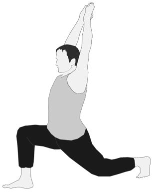 Бегун (в отличие от позы воина) – вытяжение вверх в широком шаге, пятка вверх