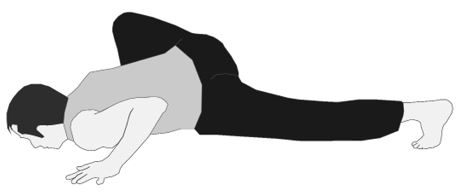Выполняя позу Бегуна, наклоняемся вперед, стараясь грудную клетку опустить как можно ниже, дотянувшись грудной клеткой и подбородком до пола. Грудную клетку выпрямлять (РИС. 43). Асану выполнить на обе стороны.