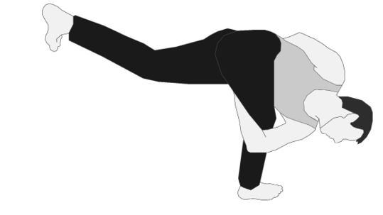 Исходное положение – стоя. Делаем наклон вперед, руки опускаем на пол, держимся руками об пол и правую ногу поднимаем назад и вверх. В наклоне держим баланс, стоя на левой ноге. Двумя руками берем левую голень, удерживая равновесие. Правую ногу тянем вверх.