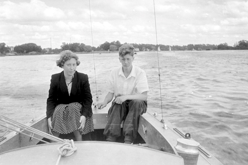 Я (слева) со своим одноклассником Женей Морозовым перед выходом из рабочей гавани в залив на новом драконе D SR-146 «Сокол», 1957г.